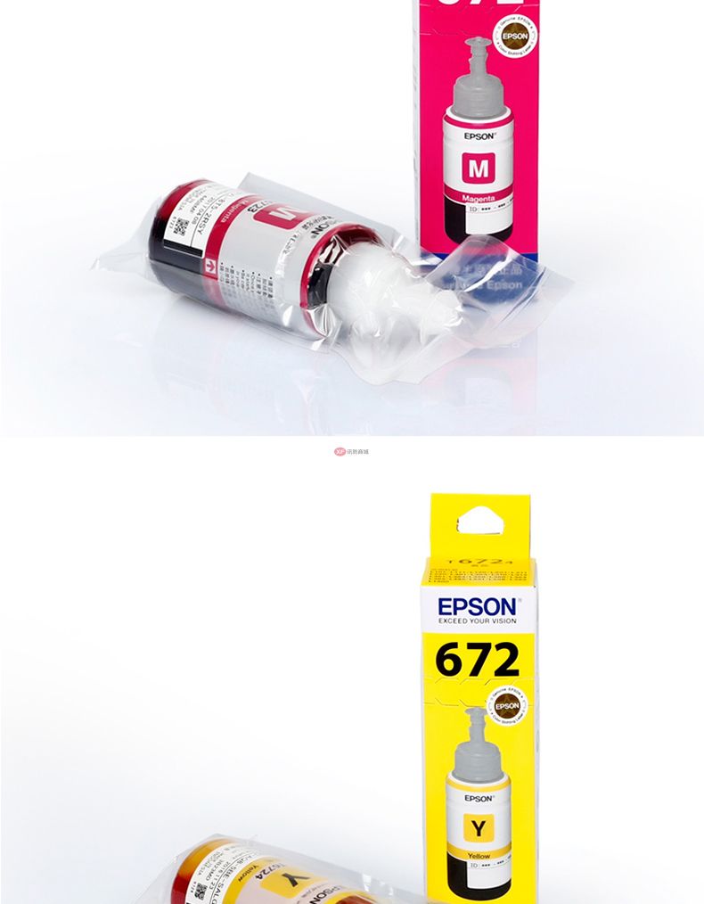 自營愛普生T6721原裝墨水L380 L385 L485 L551 L1300 L360 L220打印機 T672愛普生原裝黃色墨水