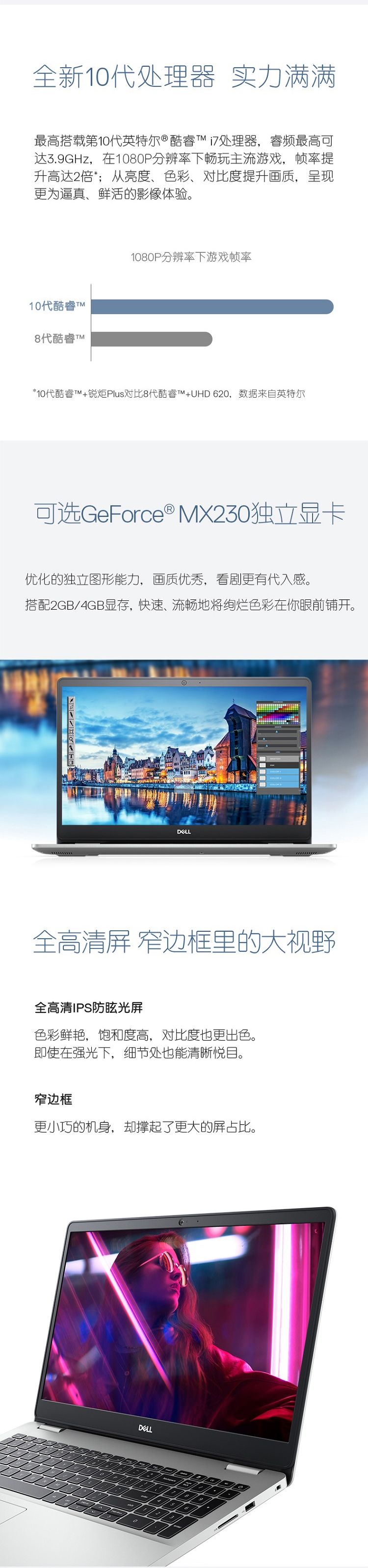 商品名稱:戴爾DELL靈越5000 酷睿i5 15.6英寸網(wǎng)課學(xué)習(xí)輕薄筆記本電腦(i5-1035G1 8G 512GSSD MX230 2G獨顯)銀
