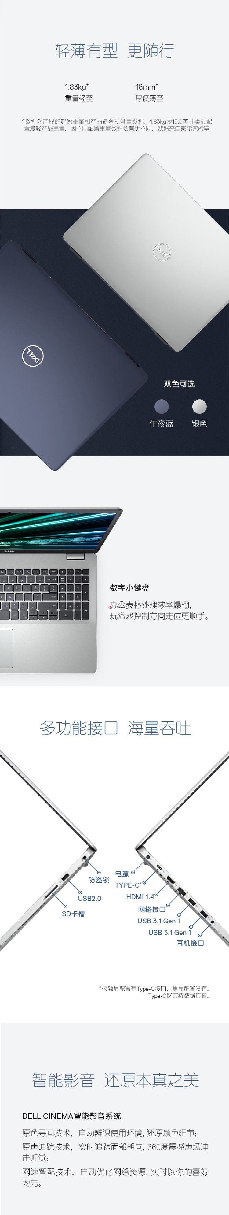 自營戴爾DELL靈越5000 酷睿i5 15.6英寸網(wǎng)課學(xué)習(xí)輕薄筆記本電腦(i5-1035G1 8G 512GSSD MX230 2G獨顯)銀