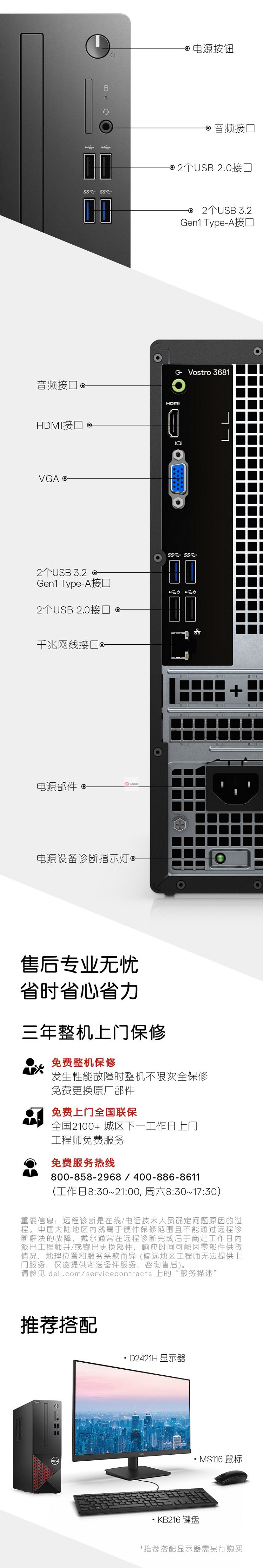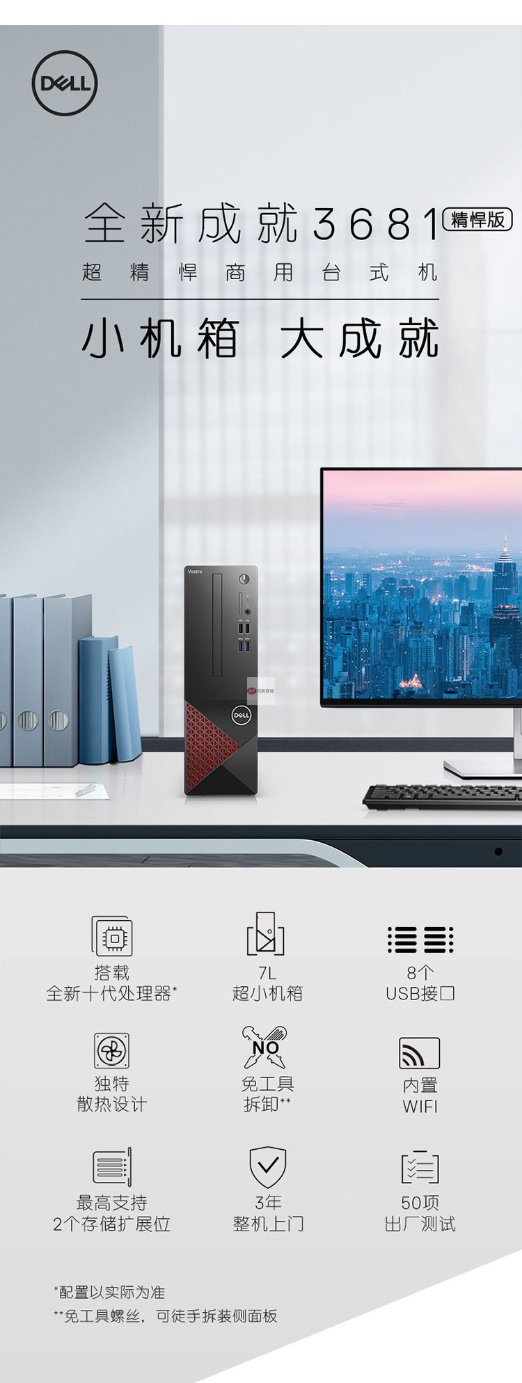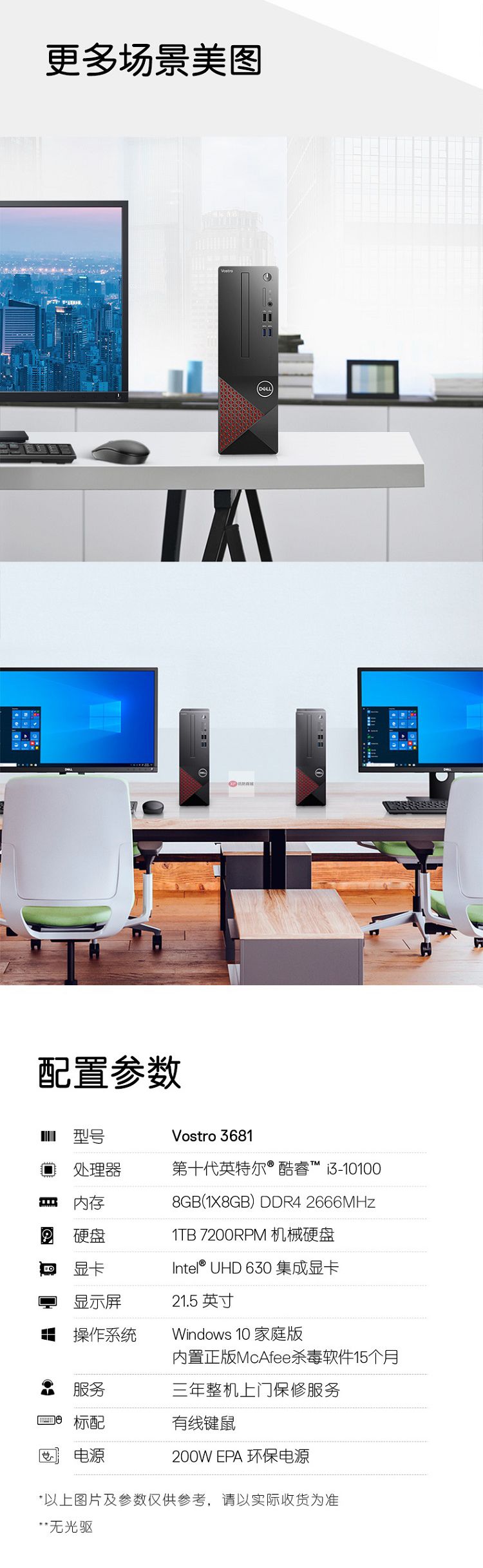 自營(yíng)戴爾(DELL)成就3681英特爾酷睿i3商用辦公高性能臺(tái)式機(jī)電腦整機(jī)(十代i3-10100 8G 1T 三年上門售后)21.5英寸