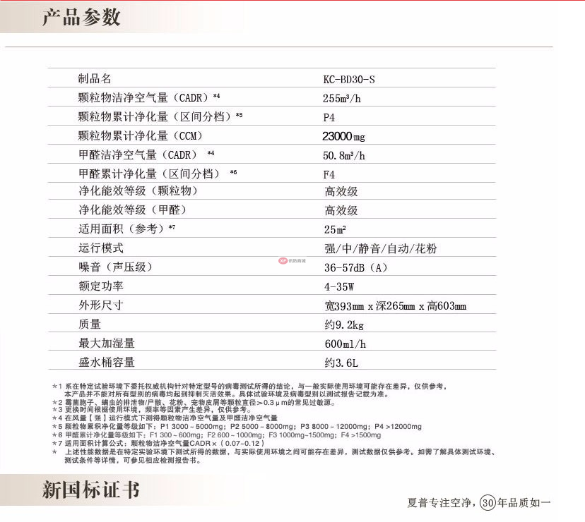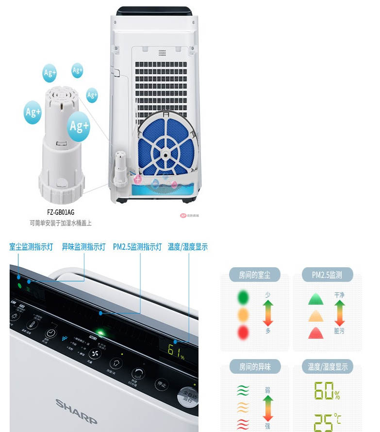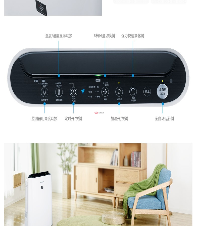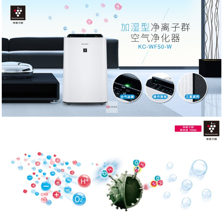商品名稱:夏普KC-WF50-W 空氣凈化器家用除甲醛加濕除霾(含濾網)