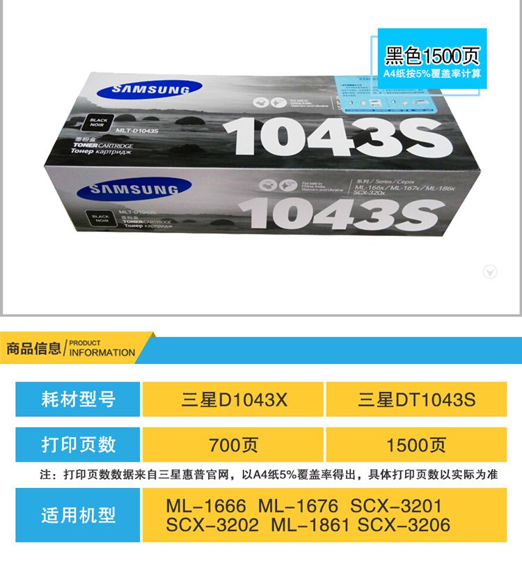 商品名稱:三星 D1043S 黑色墨粉