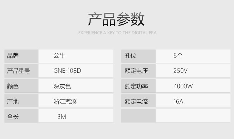 商品名稱(chēng):公牛(BULL)16A大功率插PDU機(jī)柜座/插線板/插排/排插/接線板/拖線板 8位總控全長(zhǎng)3米 GNE-108D