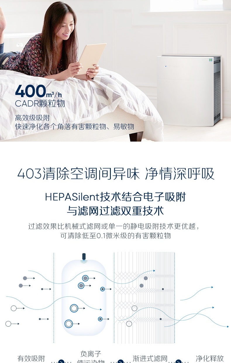 自營(yíng)布魯雅爾 Blueair 403 空氣凈化器 家用 客廳臥室辦公室內(nèi)靜音 除甲醛 除霧霾 除二手煙凈化器(線下同款)