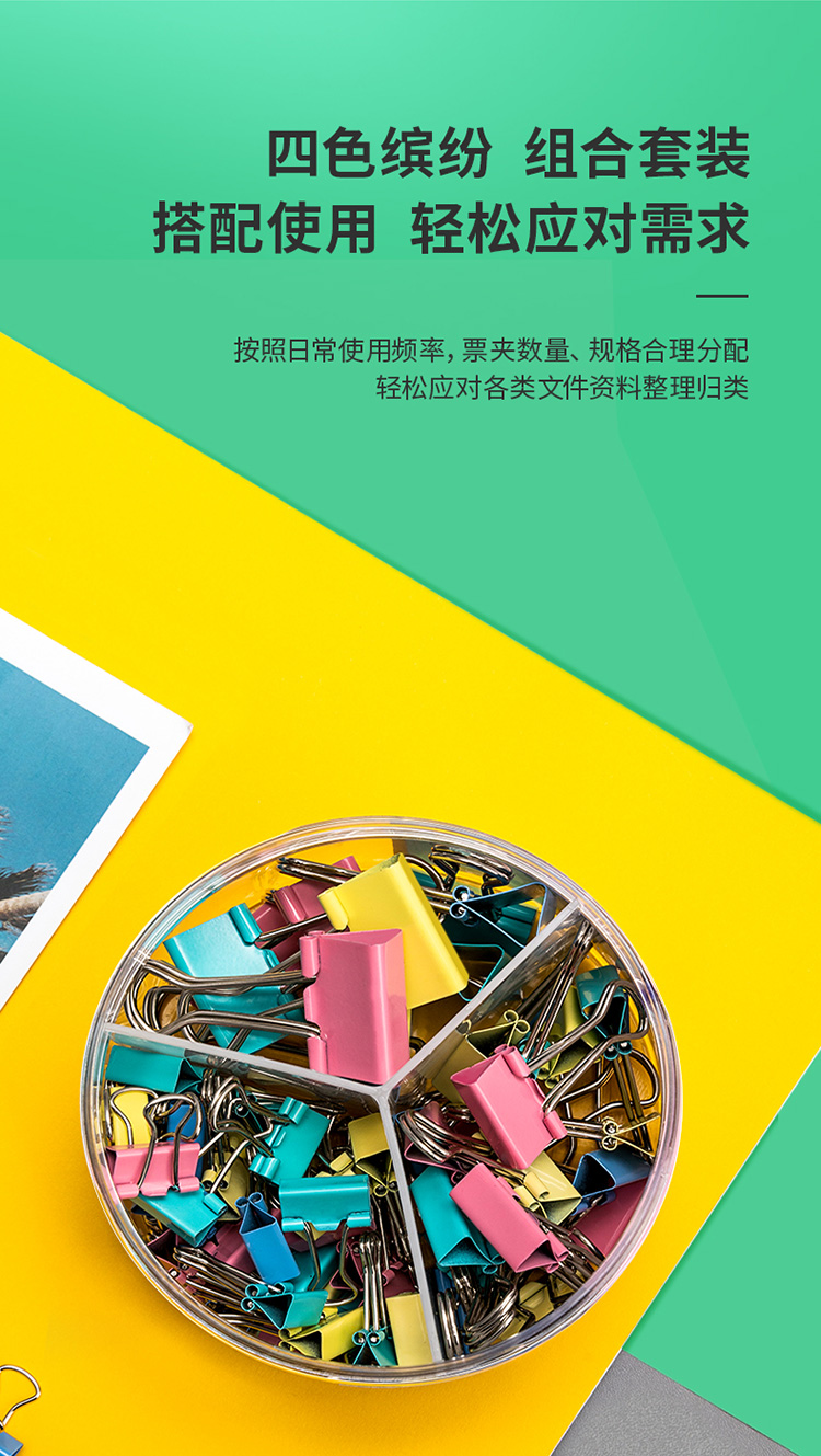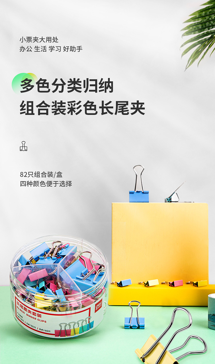 自營得力(deli)82只組合裝彩色長尾夾/燕尾夾/票夾(25mm*12只+19mm*25只+15mm*45只) 辦公用品 8521