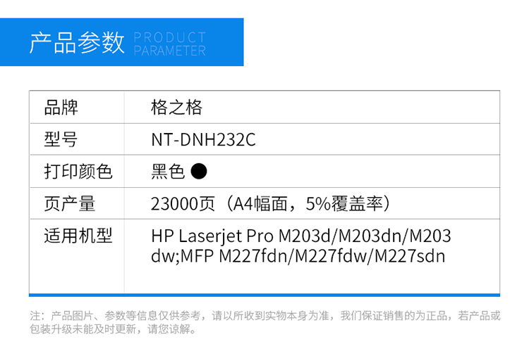 商品名稱:格之格 CF232A硒鼓NT-DNH232C帶芯片適用惠普M203d M203dn M227fdn M227fdw打印機(jī)hp32A硒鼓組件 不含粉盒