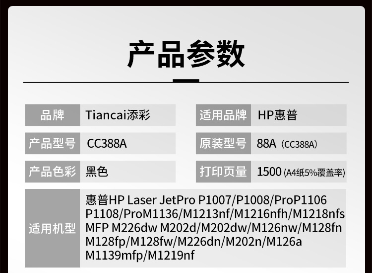 商品名稱(chēng):添彩商用裝企業(yè)版388A 88A硒鼓適用惠普HP LaserJet P1106 P1007 P1108 M126nw M202 M1136 M1213nf M1216nfh