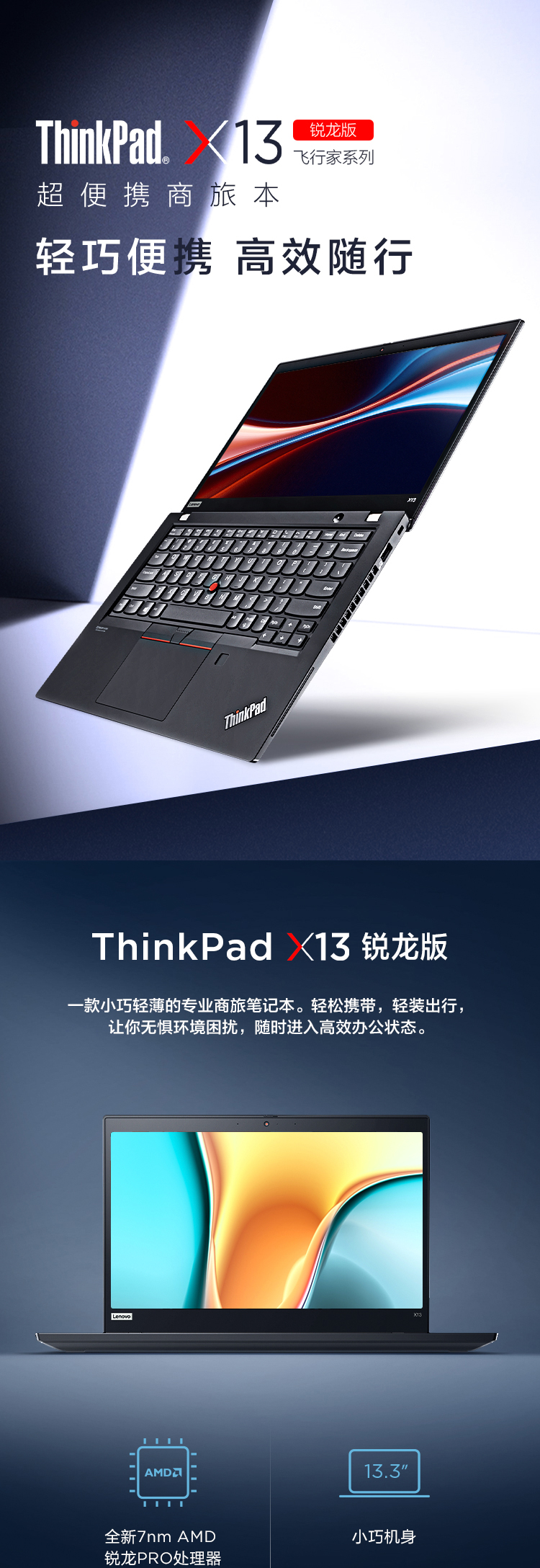 自營聯(lián)想ThinkPad X13 銳龍版(0ACD)13.3英寸高性能輕薄筆記本電腦(銳龍7 PRO 4750U 16G 512GSSD 100%sRGB)