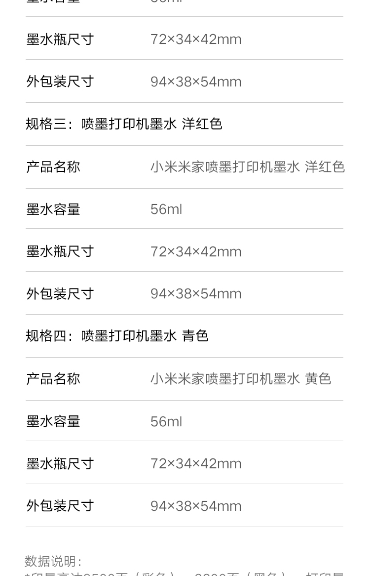 商品名稱:小米米家噴墨打印機(jī)墨水 黑色