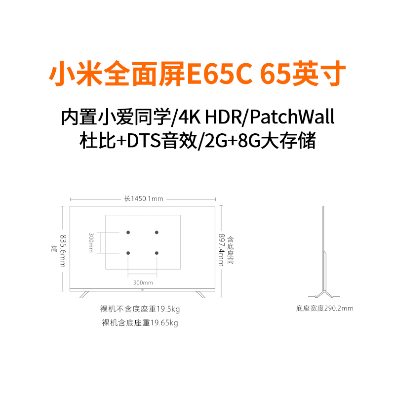 商品名稱:小米(MI)電視全面屏E65C/S 65英寸 4K超清網(wǎng)絡(luò)人工智能語音智能纖薄機(jī)身教育平板電視 全面屏電視E65C 65英寸(含電視墻掛支架加強(qiáng)型)