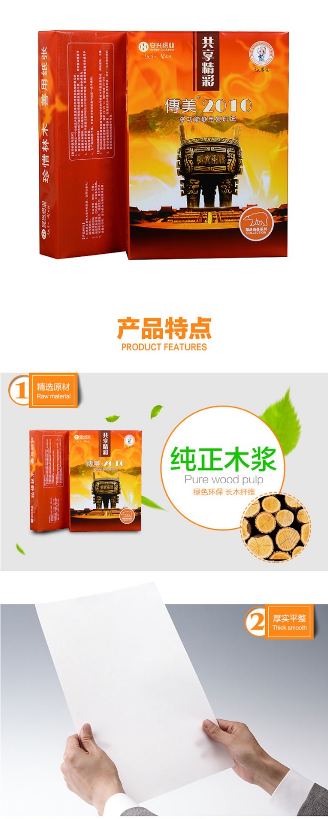 商品名稱:傳美2010復(fù)印紙 A4 80G 500張/包 單包裝