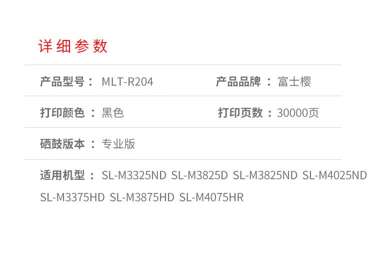 商品名稱:富士櫻(FUSICA)R204黑色硒鼓組件 適用三星SL-M3325 M3825 M4025 M3375 M3875 M4075