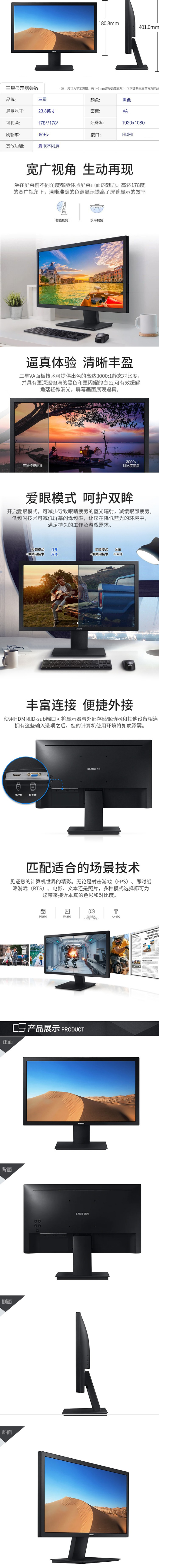 自營(yíng)三星(SAMSUNG ) S24D300HLR 23.6英寸 LED背光 HDMI高清接口 電腦顯示器