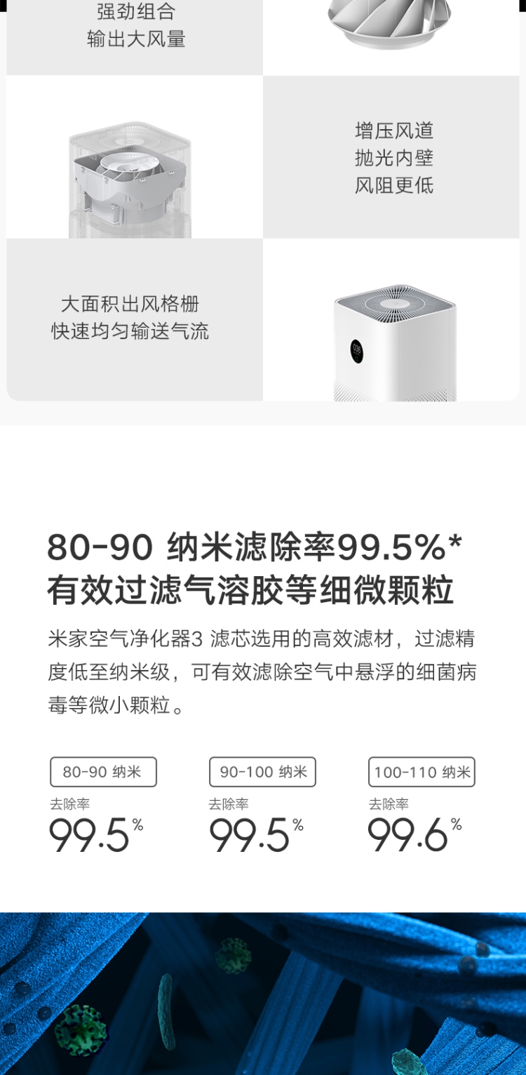 商品名稱:小米(MI)AC-M6-SC 米家空氣凈化器3 400m3/h