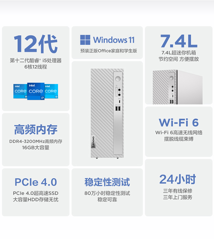 商品名稱:聯(lián)想(Lenovo)天逸510S英特爾酷睿i5個人商務臺式機電腦整機(12代i5-12400 16G 1T+256G SSDwifi win11)23英寸