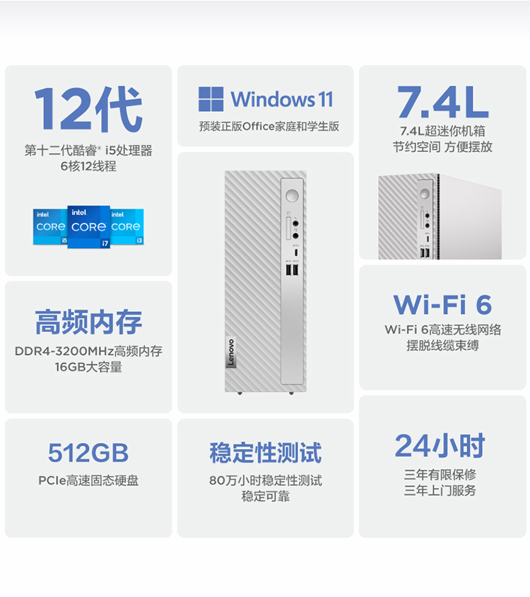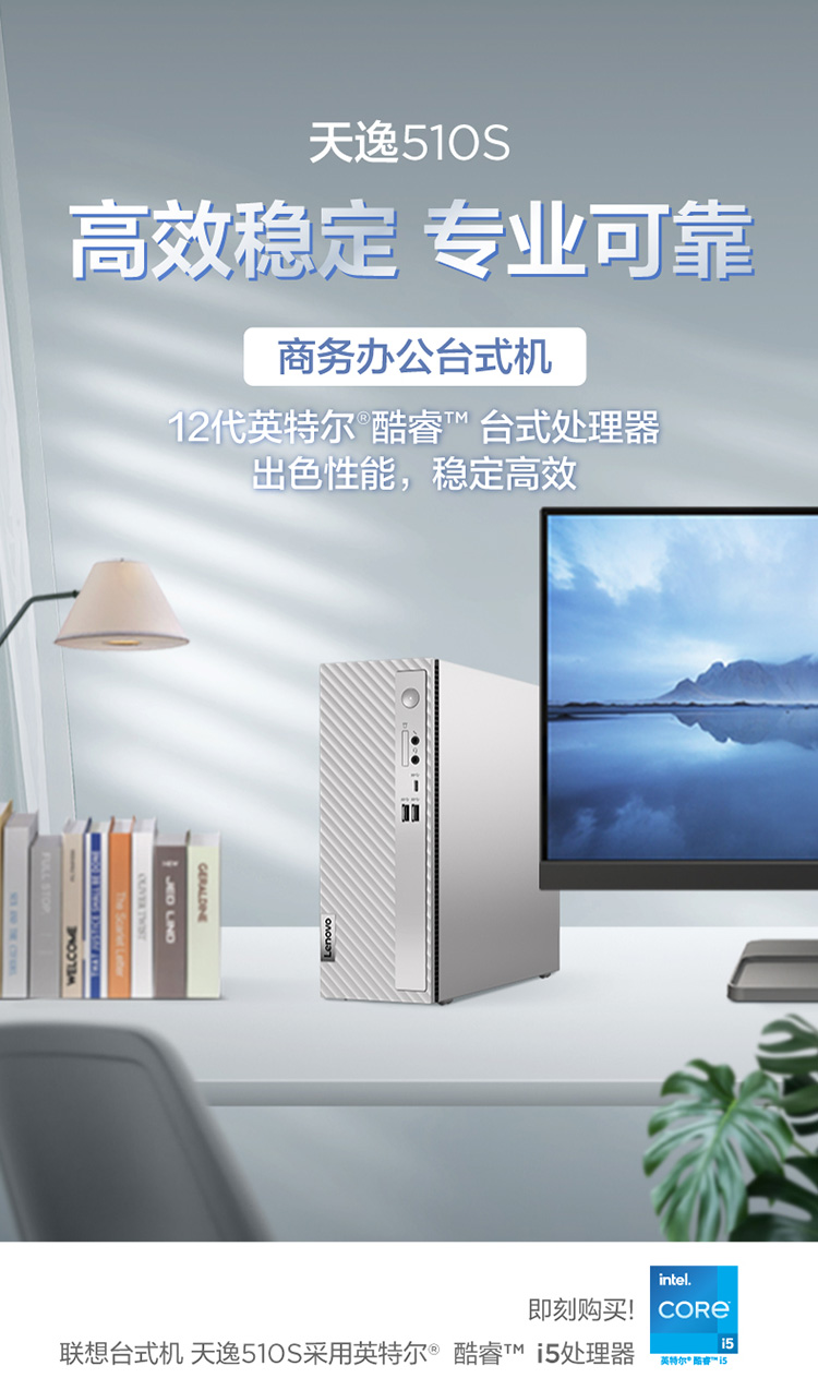 自營聯(lián)想(Lenovo)天逸510S英特爾酷睿i5個(gè)人商務(wù)臺(tái)式機(jī)電腦整機(jī)(12代i5-12400 16G 512G SSD win11)23英寸