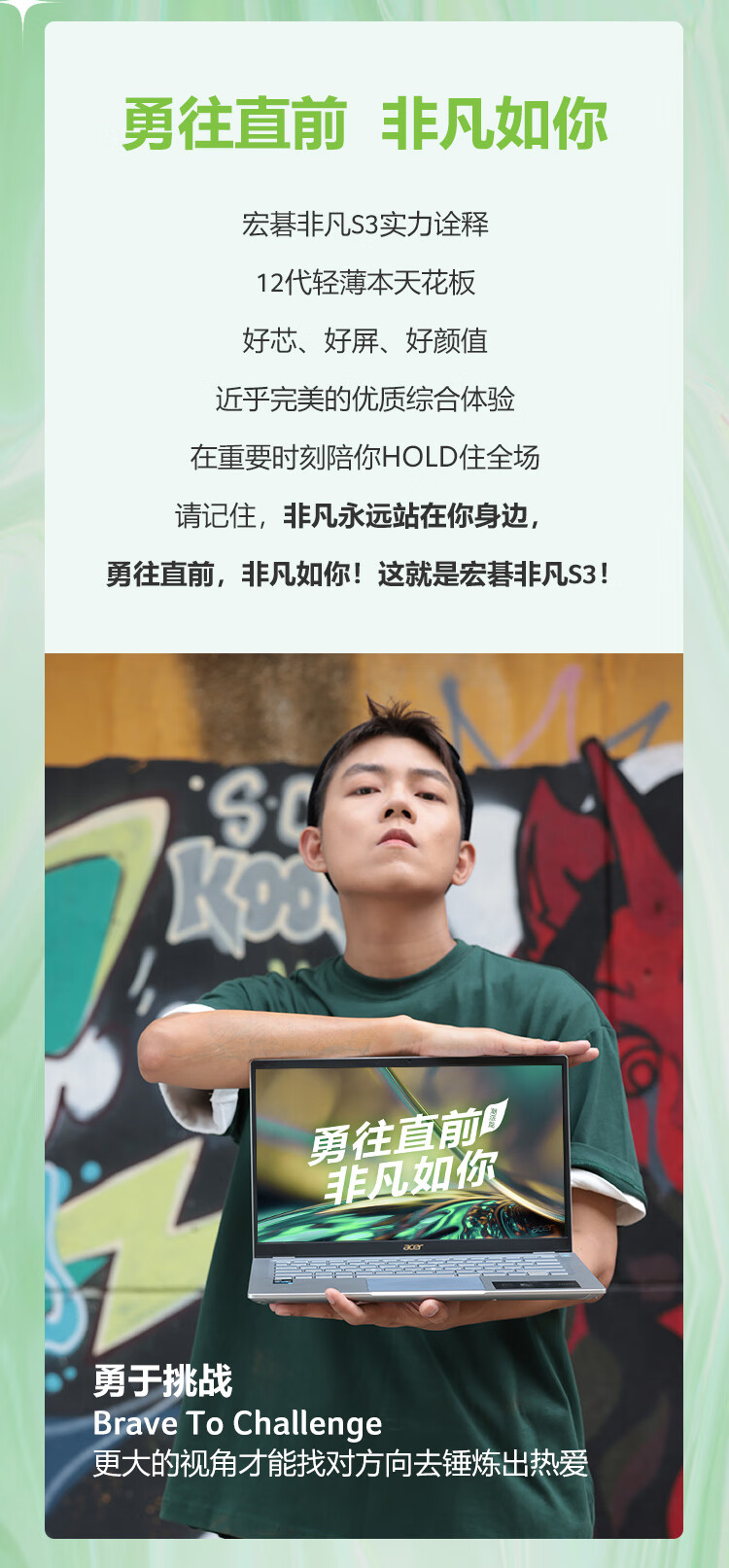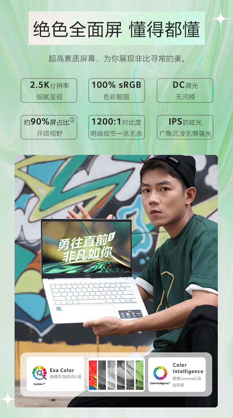 自營宏碁(Acer)非凡S3 全新12核Evo超能輕薄本 14英寸2.5K高色域 辦公學生筆記本電腦(12代i5-1240P 16G 512G)銀