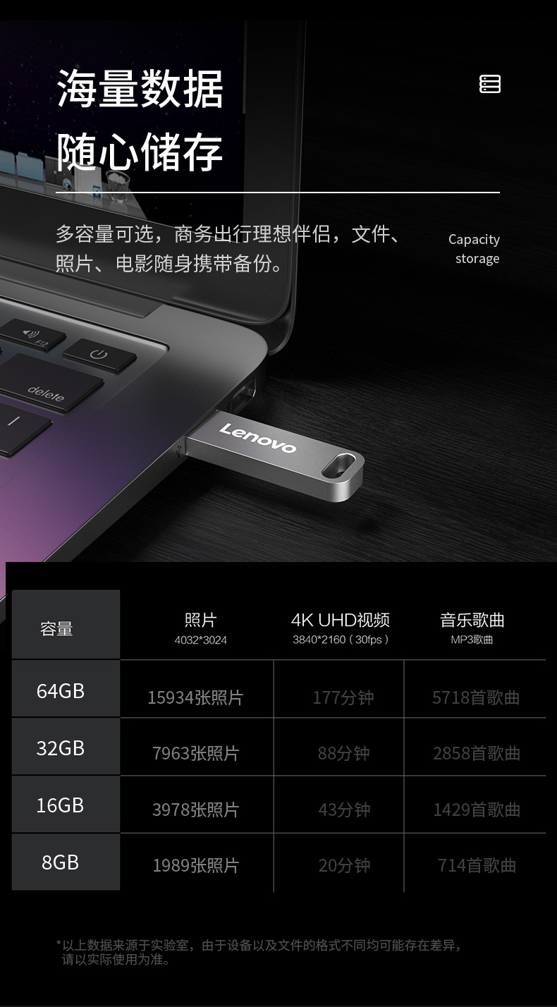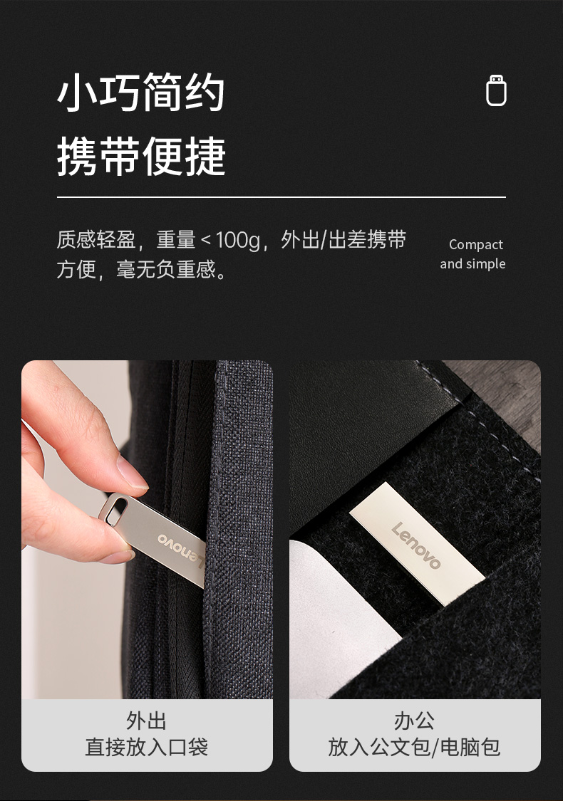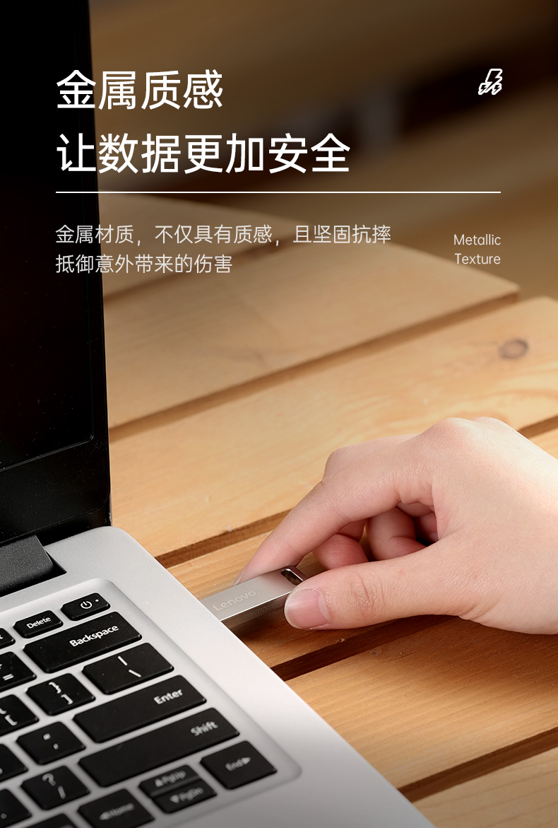 自營聯(lián)想(Lenovo)64GB USB3.1 U盤 SX1速芯系列銀色 金屬耐用 商務(wù)辦公必備