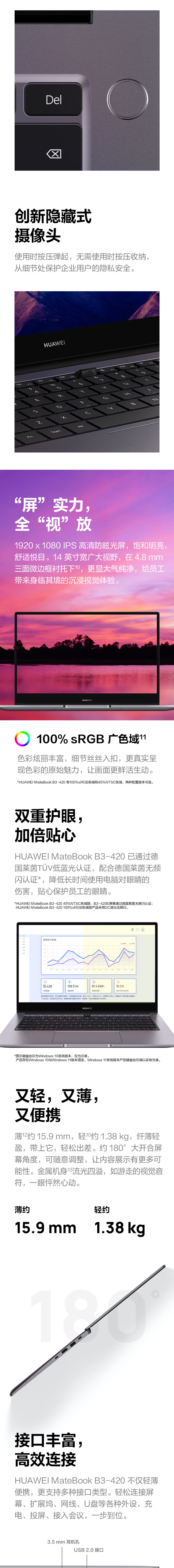 商品名稱:華為筆記本電腦 MateBook B3-420 14英寸輕薄本 (i7-1165G7 16G 512G) 深空灰