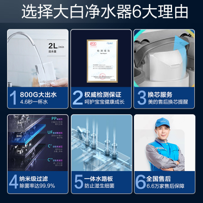 商品名稱:美的(Midea) 凈水器機(jī)家用廚房下直濾飲水前置過超濾器機(jī)無(wú)罐MU135B-4
