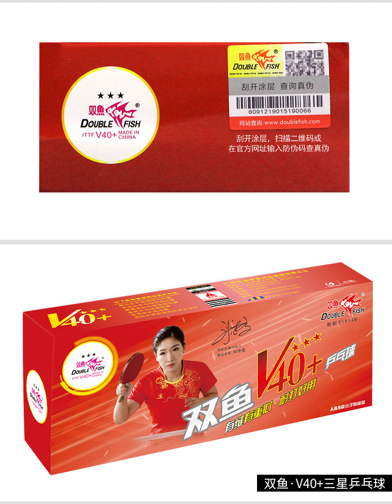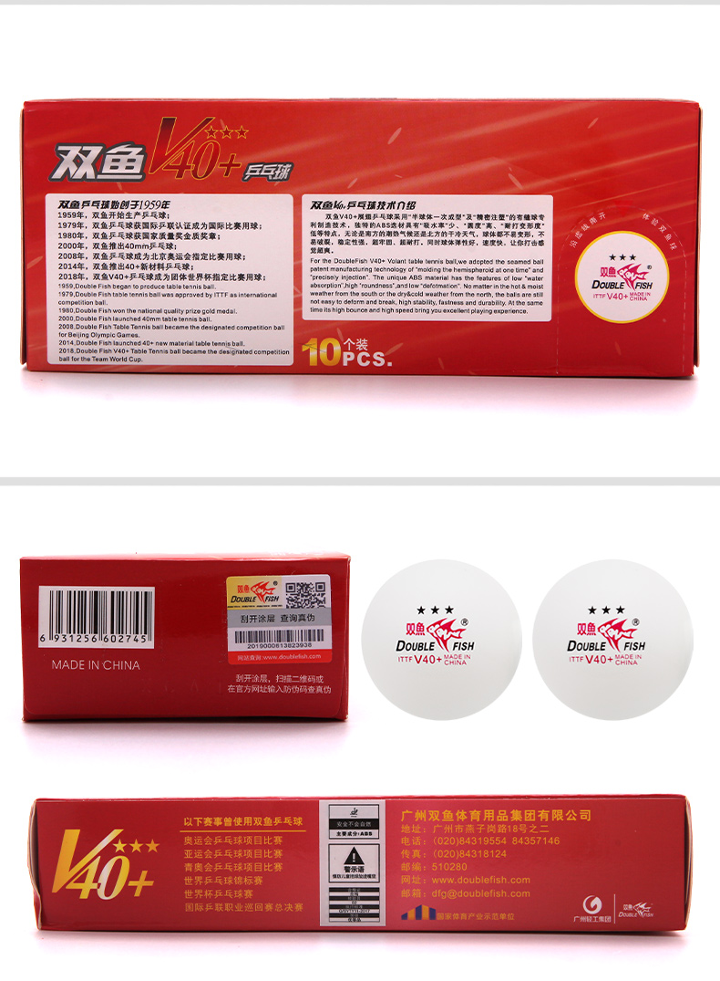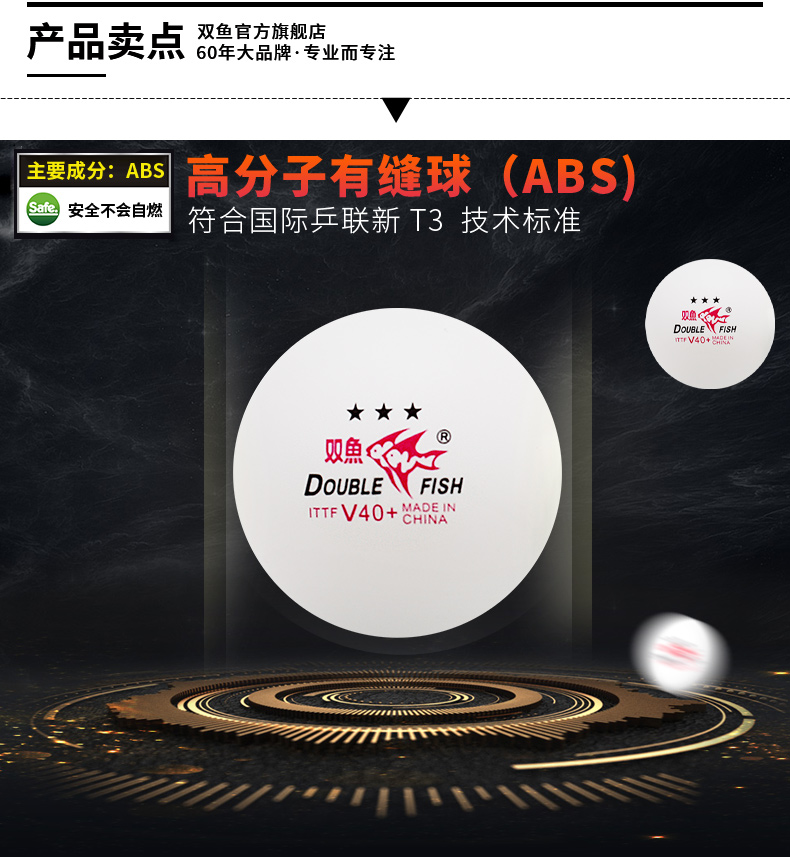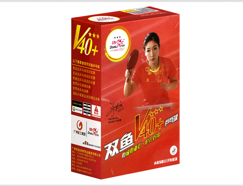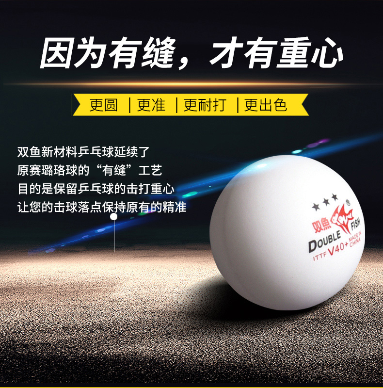 自營 雙魚V40+展翅三星乒乓球 ABS新材料 白色10只/盒