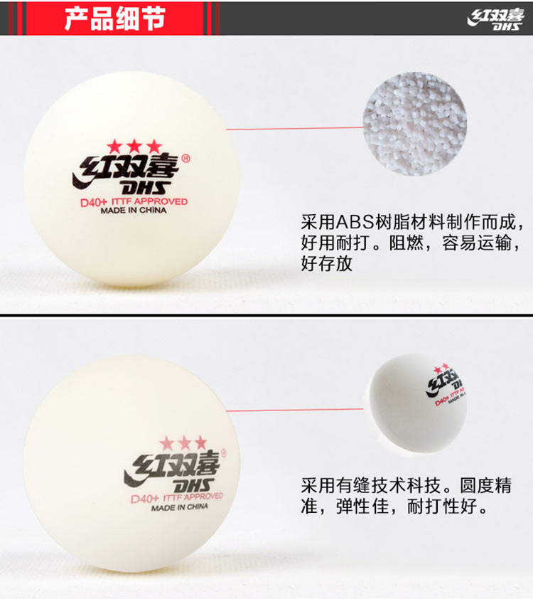 自營(yíng)紅雙喜乒乓球三星賽頂3星比賽球 白色 10/個(gè)/盒