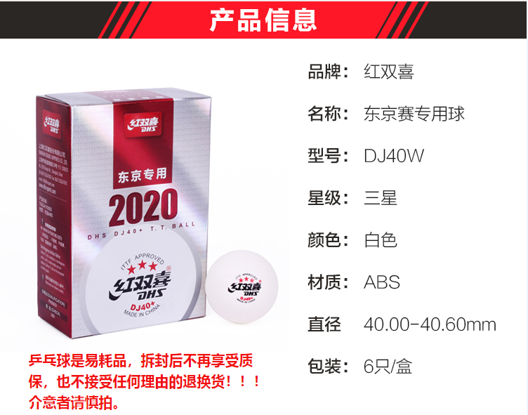 • 型號:紅雙喜2020乒乓球三星