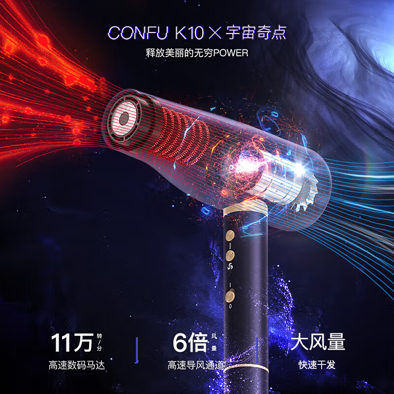 自營康夫(CONFU) KF-K10 電吹風 高速家用大功率理發(fā)店專用低噪音大風力負離子速干 恒溫護發(fā)廊