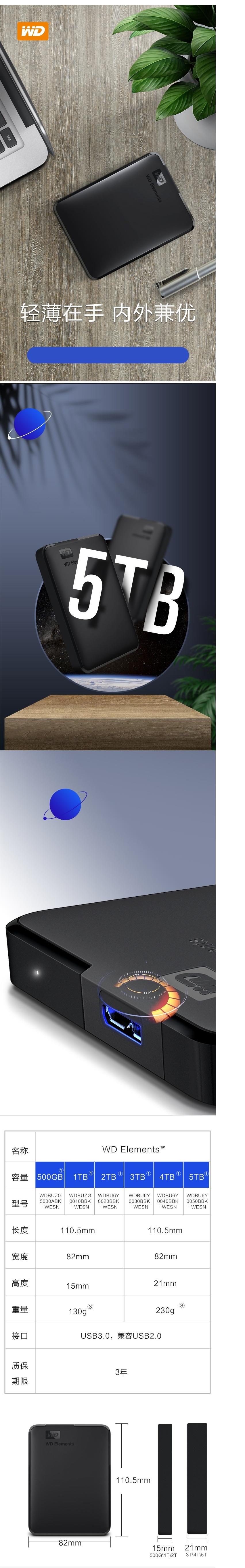 商品名稱:西部數(shù)據(jù)(WD) WDBUZG0010BBK 1TB USB3.0 移動硬盤 Elements 新元素系列2.5英寸 快速傳輸 輕薄便攜