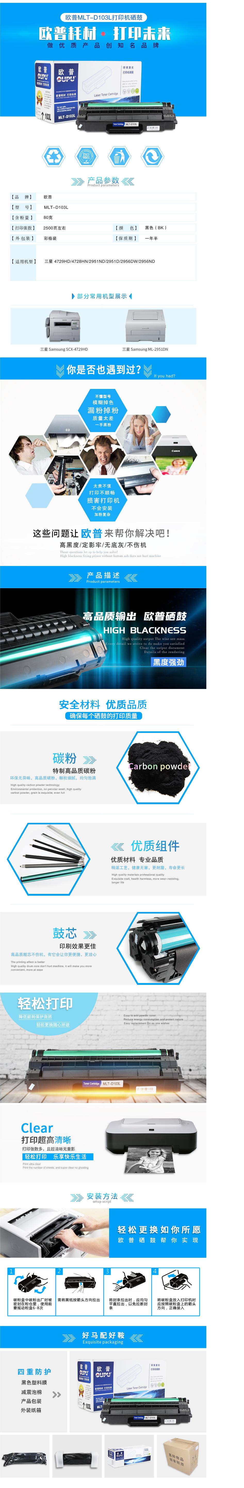 商品名稱:歐普(oupu)MLT-D103L硒鼓適用三星 4729HD/4728HN/2951ND/2951D/2956DW/2956ND
