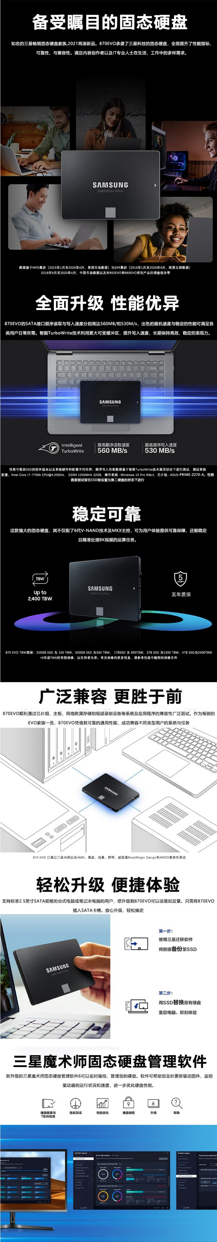 自營三星(SAMSUNG)MZ-77E500B 固態(tài)硬盤 500G SSD SATA3.0接口 870 EVO