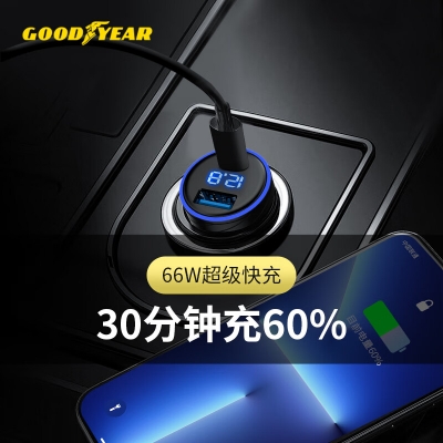 商品名稱:固特異(Goodyear)車載充電器66W超級快充點(diǎn)煙孔轉(zhuǎn)換器雙口閃充華為蘋果小米GY-2603
