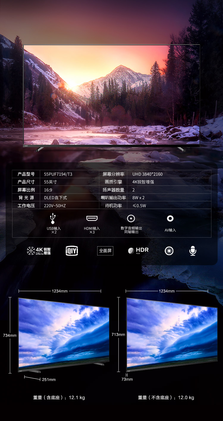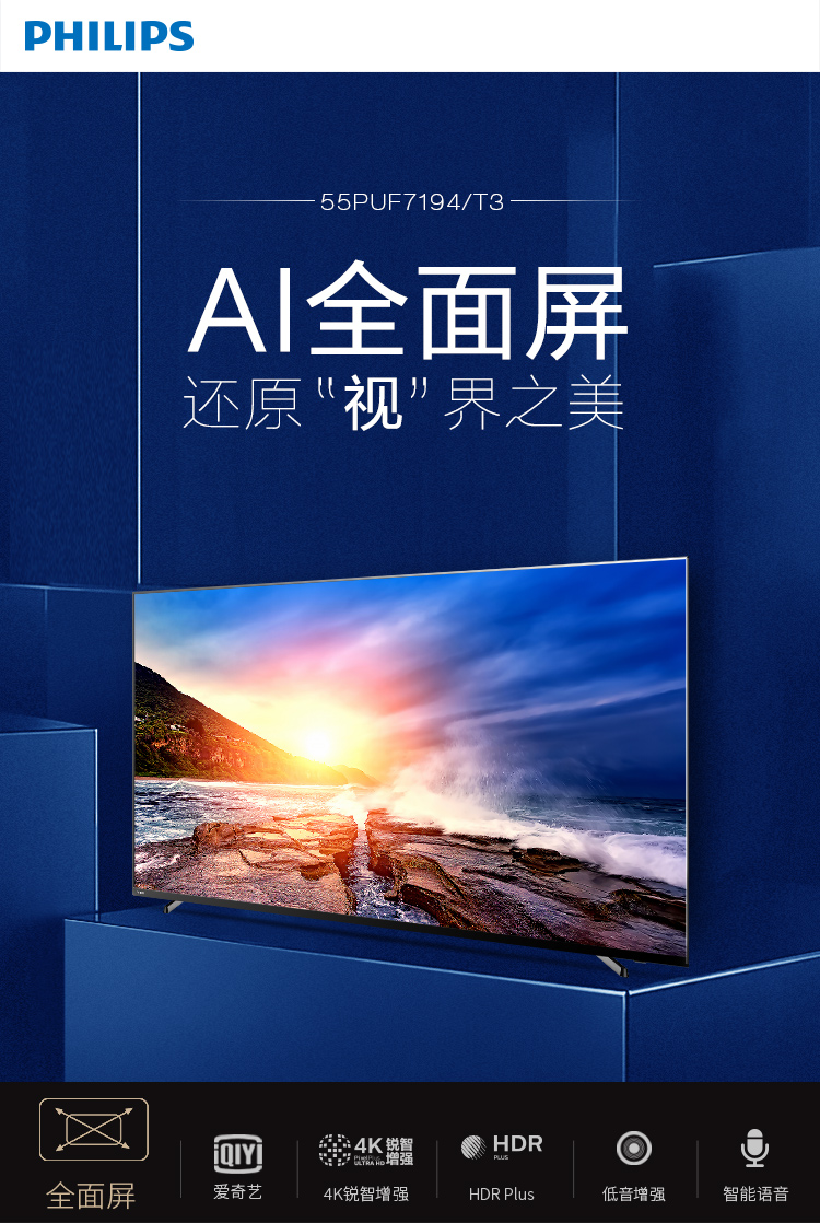 商品名稱:飛利浦(PHILIPS)55PUF7194/T3 55英寸 人工智能 一級能效 超薄全面屏 4K超高清HDR網(wǎng)絡(luò)智能液晶平板電視機(jī)
