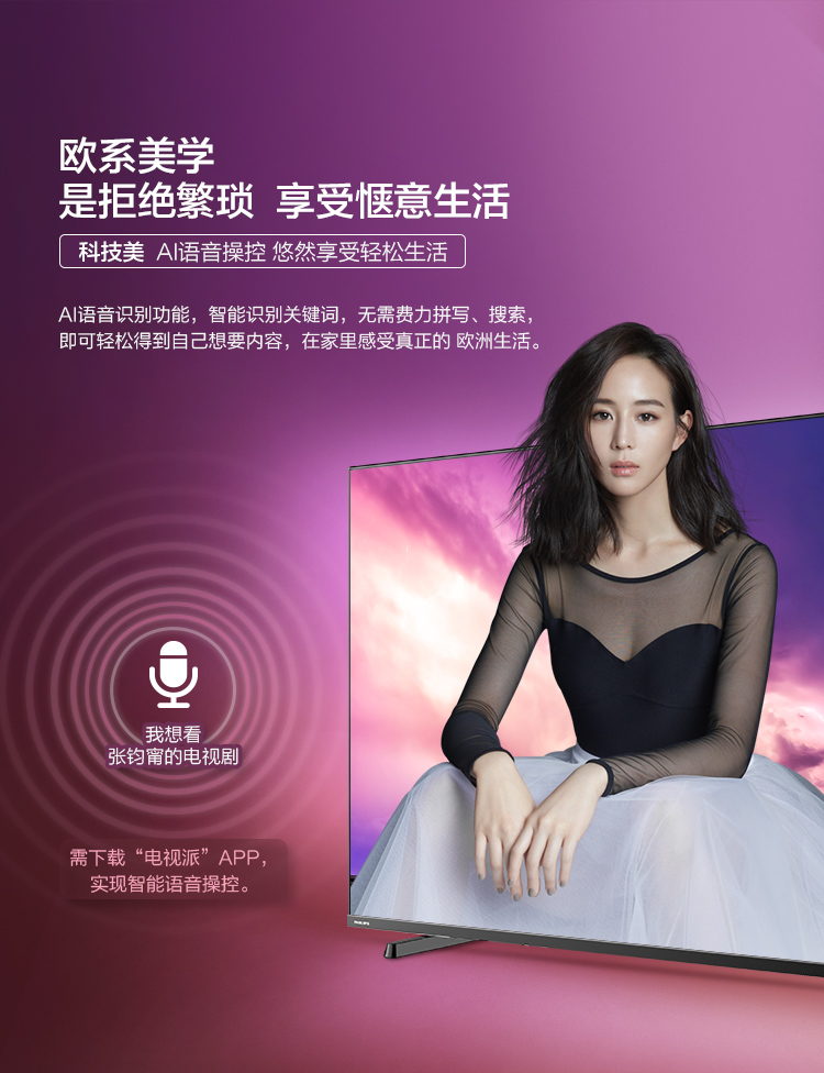 自營飛利浦(PHILIPS)55PUF7194/T3 55英寸 人工智能 一級能效 超薄全面屏 4K超高清HDR網(wǎng)絡(luò)智能液晶平板電視機(jī)