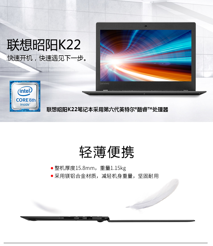 • 商品名稱:聯(lián)想(Lenovo)筆記本 昭陽K22-80 I5-6200U/4G/256G SSSD/核顯/無光驅(qū)/Win7H//包鼠套裝