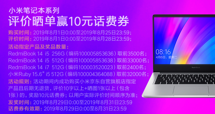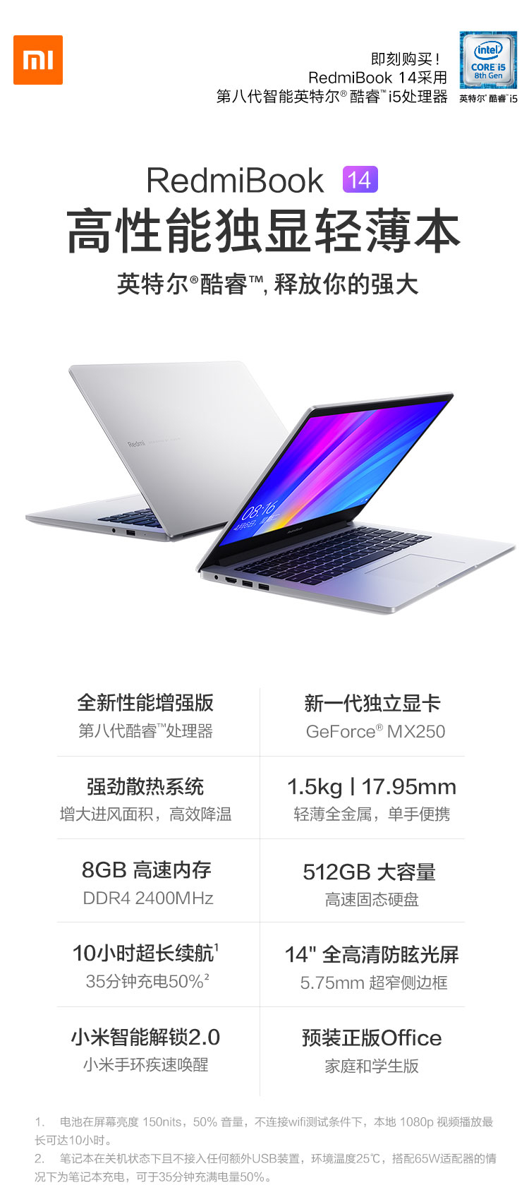 自營(yíng)RedmiBook 14英寸全金屬超輕薄(第八代英特爾酷睿i5-8265U 8G 512G SSD MX250 2G獨(dú)顯 Office 支持手環(huán)疾速解鎖 Win10)游戲 銀 筆記本 小米 紅米