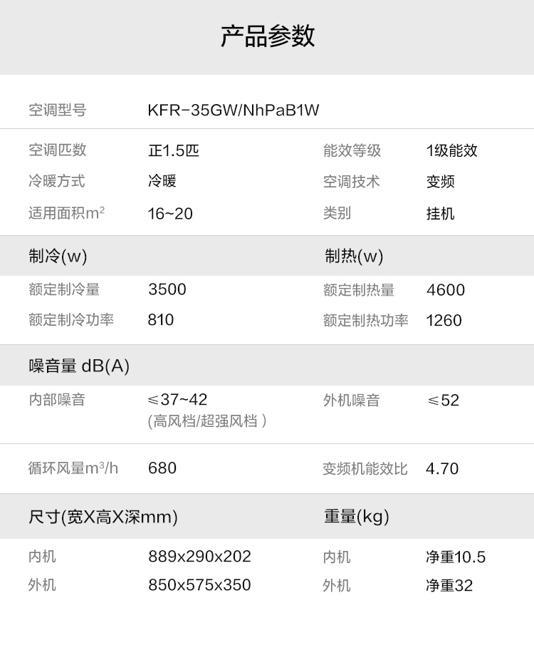商品名稱:格力(GREE)1.5匹 云錦 一級能效 變頻 冷暖自潔 壁掛式臥室空調(diào)掛機 KFR-35GW/NhPaB1W 京魚座智能生態(tài)產(chǎn)品