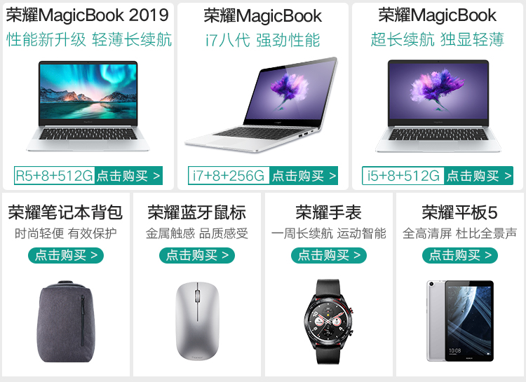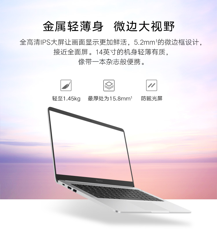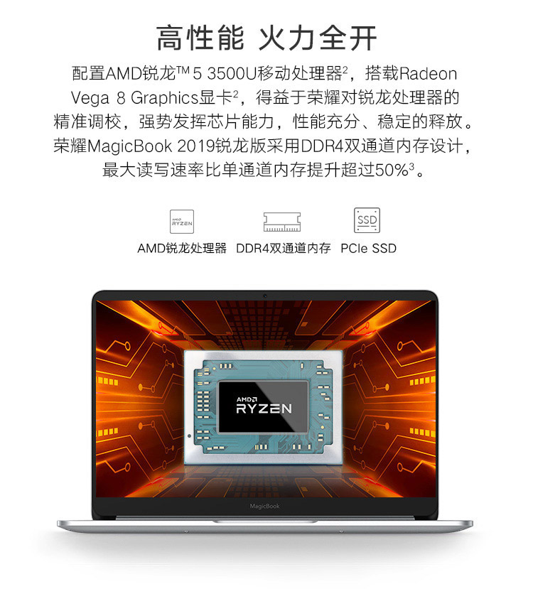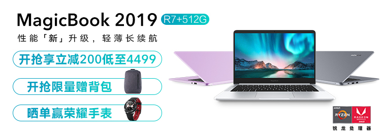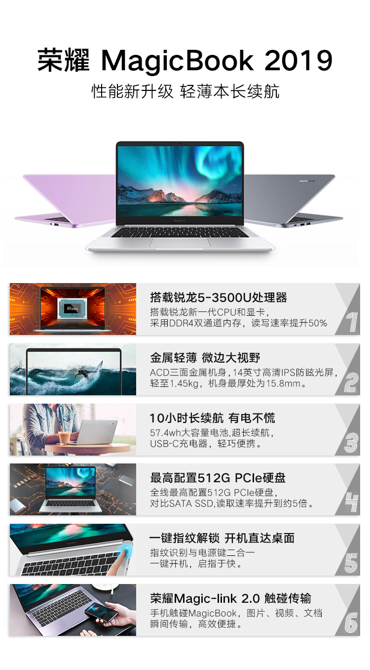 自營(yíng)榮耀MagicBook 2019 14英寸輕薄窄邊框筆記本電腦(AMD銳龍5 3500U 8G 512G FHD IPS 指紋解鎖)冰河銀