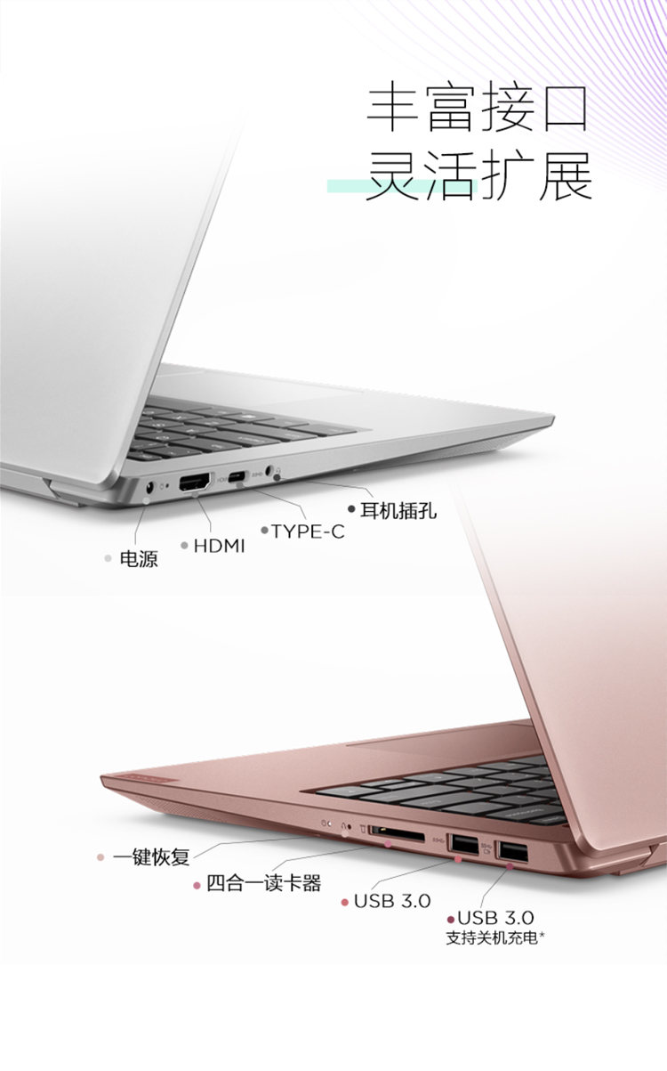 自營聯(lián)想(Lenovo)小新14英寸 英特爾酷睿i5 輕薄窄邊框筆記本電腦(I5-8265U 8G 1TB+256G PCIE MX230 IPS)仙女粉