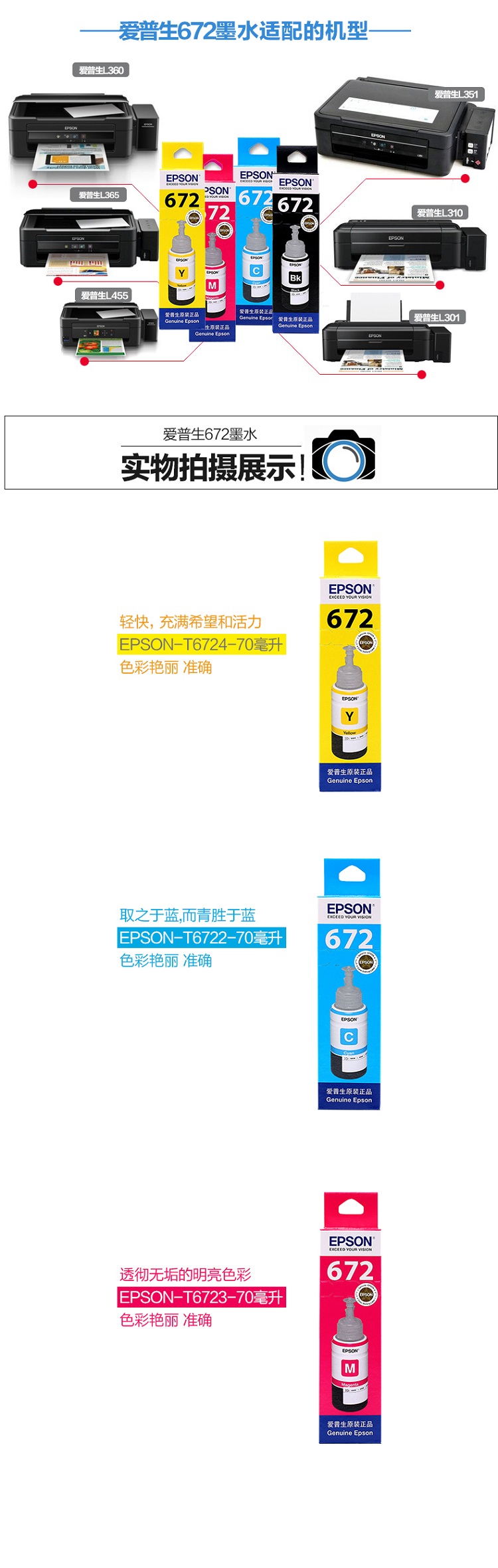 商品名稱:愛普生/Epson T6721-T6724. (愛普生T6721原裝墨水L380 L385 L485 L551 L1300 L360 T672愛普生原裝4色墨水一套)